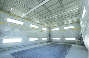 塗装ブースの中は湿度や温度が一定に保たれホコリが舞わないように工夫されています。